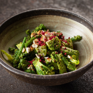 Cook the quinoa, blanch the broccoli, pak choi, and Kenyan beans.