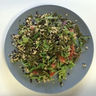 Green Salad with Bulgur, Beluga Lentils, and Mint Dressing