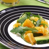 In a bowl, combine the salad greens, orange segments, avocado slices, thinly sliced red onion, and the coriander and lime vinaigrette (see note).