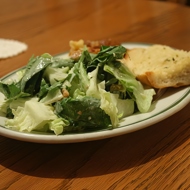 In a large bowl, place the salad greens and drizzle with the vinaigrette. Gently toss to combine.