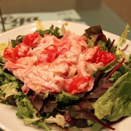 Arrange the tomatoes on top of the mixed salad leaves and serve.