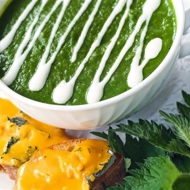 Wash, peel, and dice the potato, add it to the broth, and cook for 20 minutes. Add the remaining nettle leaves and blend until smooth.