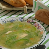 Add the pepper and celery strips to the boiling broth first, and after 10 minutes, add the leek half-rings. Cook for another 5 minutes or until the vegetables are tender.