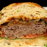 Remove the buns from the grill and assemble 8 burgers by placing the patties, onions, and sliced tomatoes between the halves.