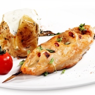 Place the chicken breasts on the greased grill and cook, continuously brushing with garlic butter, for about 30 minutes until cooked through, stopping to brush 5 minutes before the end of cooking.