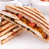 Lightly toast the bread on the grill. Remove the chicken from the heat.