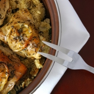 On plates, serve the couscous topped with the chicken, drizzled with the juices.