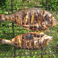 Grill the fish over white coals until cooked, occasionally brushing with the marinade using a culinary brush.