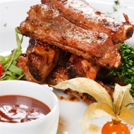 Place a dry grill pan over high heat and preheat. Place the pieces of meat in the pan fat side down (perpendicular to the pan) and cook for 4–5 minutes until the fat is covered with a crispy crust.