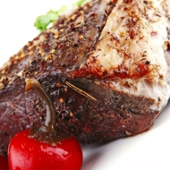 Place the meat on the grill and cook, basting with the marinade every 10-15 minutes and turning, for about 50 minutes. Do not overcook; the top should be a golden crispy crust, but the meat should remain slightly pink inside.