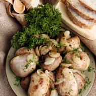 In a small bowl, mix the minced garlic, a handful of finely chopped parsley leaves, olive oil, and salt.