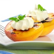 Cut the peaches in half and remove the pits. Place the halves cut side down on the grill and cook until grill marks appear.