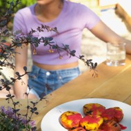 Grilled peaches with fresh raspberry sauce