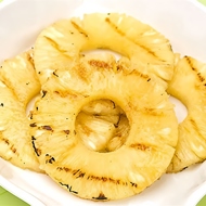 Sprinkle the rings with powdered sugar and grill on both sides in heated butter. Drizzle with rum or liqueur.