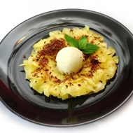 Grilled Pineapple with Black Pepper, Ice Cream, and Honey-Orange Sauce