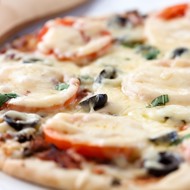 Place the pizza base on the barbecue grill. Grill over medium heat for 2-5 minutes until the bottom of the pizza is golden. Flip the base with tongs. Lightly brush with olive oil. Sprinkle with mozzarella, then basil, and top with slices of tomatoes. Grill for another 3-5 minutes until the cheese starts to melt. Drizzle the finished pizza with the remaining olive oil. Sprinkle with salt and pepper.
