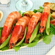 Place the shrimp on a work surface and sort them by size. Thread several pieces onto wooden skewers, ensuring the tails are facing the same direction and are close together.