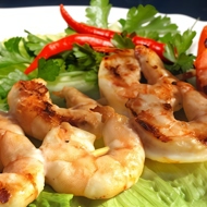 Soak wooden skewers in cold water for 20 minutes. Preheat the grill to maximum temperature. Thread the shrimp onto the skewers and grill until cooked, brushing with the remaining marinade.