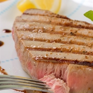 Brush the tuna pieces with olive oil, and season with salt and pepper. Place on the grill and cook for 3 minutes on each side for medium doneness. Transfer to plates, top with a small amount of tapenade, and serve immediately.