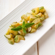 Cut the zucchini in half lengthwise, then into large pieces. Transfer to a bowl. Drizzle with oil. Season with salt and pepper.