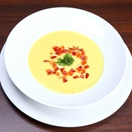 Before serving, place the crispy bacon in bowls. Garnish the soup with chopped chives or minced red pepper. Serve with hot baguette.