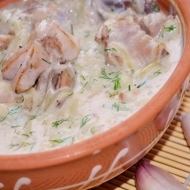 Gulchehra is a very tender chicken dish prepared with the addition of sour cream (cream or milk). It is essential to add spices and garlic, and to thicken the sauce, flour is added. Gulchehra turns out very tender and delicious, and the sauce is eaten to the last drop. For a side dish, you can make mashed potatoes or boil pasta. Try gulchehra — it's very tasty!!!