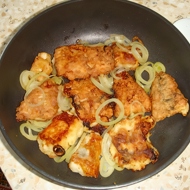Then, place the sliced onion on top of the fried fillet and let it simmer. After about 10 minutes, remove from heat; the fish is ready.