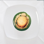 Pour the sauce into the center of the plate. Top with the celery puree. Arrange the sautéed spinach on the puree. Place the finished soufflé on top and serve immediately.