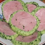 * To slice the ham into neat, even pieces, dip the knife in hot water before cutting each slice, then dry it with a towel — this way, the cheese will not crumble, and the appetizer will look more presentable.