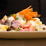 Dress the salad with a mixture of mayonnaise and yogurt.