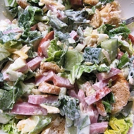 You can skip the salt, as the cheese is usually salty enough. You can also omit the egg — it's just for heartiness. I use pork ham, and the croutons are flavored with red caviar. Adjust the quantities of the ingredients to your liking; feel free to improvise.
