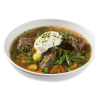 Top each serving of soup with a poached egg, sprinkle with herbs, and serve immediately.