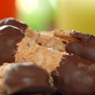 Melt the chocolate in a double boiler. In a clean bowl, place 0.3 cups of chopped hazelnuts. Dip one end of each cookie into the melted chocolate, then into the nuts. Transfer to a plate and repeat with the remaining cookies. Let sit for 1 hour until the chocolate hardens.