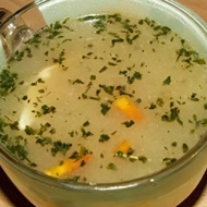 Remove the onion and carrot from the broth, fish out the bay leaves, and add the sautéed mixture to the broth. Reduce the heat to 3 out of 9 and cook for another 40 minutes. Then finely chop the dill and parsley, add them to the broth, stir, and remove from heat, allowing to steep for another 10-15 minutes.