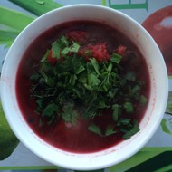 Grate the beet (one large or two small) and the medium carrot on a coarse grater.