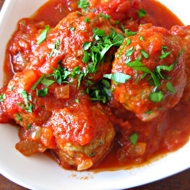 Now add the 'hedgehogs' to the pan. The tops of the meatballs should not be covered with sauce. Cover with a lid and simmer for 10 minutes. Then uncover and spoon sauce over the tops of the 'hedgehogs' carefully to avoid damaging the meatballs, and simmer for another 10 minutes. Uncover again and spoon sauce over the tops. Cover the lid and simmer for the last 10 minutes. The total cooking time is 30 minutes.