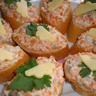 Pass the herring, carrot, processed cheese, and butter through a meat grinder and mix thoroughly. Chill.
