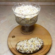 Cut the apples into cubes, like the herring. Drizzle with lemon juice and mix.