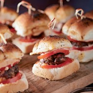 While the patties are baking, slice the tomatoes into thin rounds.