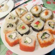 Serve the rolls with pickled ginger, wasabi, and soy sauce.