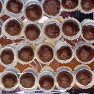 Break the chocolate, add 15 grams of cocoa butter (or butter), and melt it in the microwave. Roll the resulting mixture into balls weighing 25 grams. Dip some of the candies in chocolate and roll others in coconut flakes. Place in the freezer in a sealed container for 1 hour.