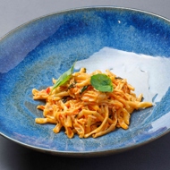 Homemade Chicatelli Pasta with Crab and Tomato-Cream Sauce