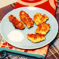 In a deep frying pan, heat vegetable oil well. Place the breaded chicken pieces in the pan. The vegetable oil should completely cover the nuggets.
