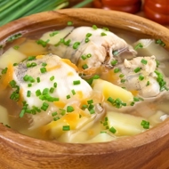 Clean the fish. Place the fish heads and tails in water and boil for 25–30 minutes. Then remove them (they will not be needed anymore) and strain the broth if desired. Cut the fish into small pieces.