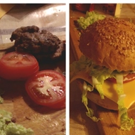 Remove the patties from the oven and let them cool slightly to avoid burning yourself. Then cut each patty in half, resulting in 14 small patties, enough for 14 hamburgers or 7 Big Macs.