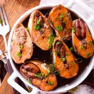 Thaw the herring, remove the heads, and cut into large pieces of equal width.