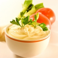 Homemade mayonnaise made in a blender.