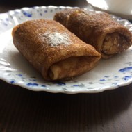 Fry the pancake, flip it over, and place about 1 tablespoon of filling inside. Fold and fry. To prevent the pancake from falling apart, you can brush the edge with egg.