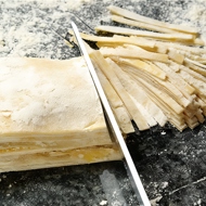 Place the dough on a floured surface and knead until it becomes smooth. Wrap in plastic wrap and leave in the refrigerator for at least one hour.