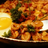 When the egg in the skillet is cooked to perfection, the sauce has thickened and reduced, and the cheese has melted, remove from heat, sprinkle with your favorite herbs, and enjoy your meal. Bon appétit.